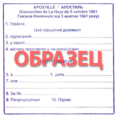 При этом заголовок самого документа пишется на французском языке - «APOSTILLE (Convention de la Haye du 5 octobre 1961)», а в его текст запрещается вносить какие-либо изменения и правки. Сам текст штампа должен быть написан на украинском языке. Согласно международной конвенции, категорически запрещается вносить в текст штампа изменения и менять порядок строк. Признается недействительным штамп, выполненный при помощи метода ксерокопирования или сканирования и дальнейшей его подшивки к документам. На каждом удостоверяемом документе в обязательном порядке должен стоять именно оригинальный оттиск Апостиля.